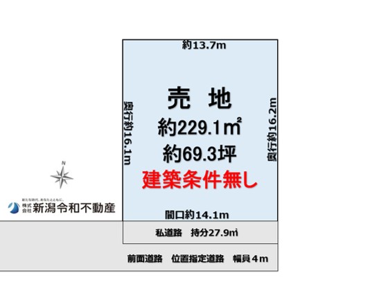 綺麗な整形地、南向きで日当たり良好な閑静な住宅地です。前面4m位置指定道路(間口14.1m)で駐車もゆったり。女池小徒歩7分、鳥屋野中徒歩10分と子育て安心再建築可能。 ☆おススメpoint☆女池3丁目売地、229㎡の広々整形地!南向き日当たり良好です!、女池小学校まで徒歩約7分、鳥屋野中まで徒歩約10分と子育て環境は◎。ライフライン完備・測量済みで即建築OK!ゆったり駐車も余裕だよ♪ 宅地 229㎡の整形地、確定測量済みの綺麗な売地です。 南向きで日当たり良好、ゆったり広々とした敷地で閑静な住宅地に位置しています。 前面は幅員約4mの位置指定道路に面し、道路は通り抜けできませんが、間口約14.1mあるため、駐車スペースの配置次第で楽々駐車が可能です。 女池小学校まで徒歩約7分、鳥屋野中学校まで徒歩約10分と通学に便利で、親子とも安心してお住まいいただけます。 ライフラインは引込み済み、即建築に着手でき、確定測量も実施済みのため、境界トラブルの心配も無し。 スーパーウオロクやピアレマートなど日々のお買い物にも便利な立地です。 自由なプランでマイホーム建築をご検討いただけます。
