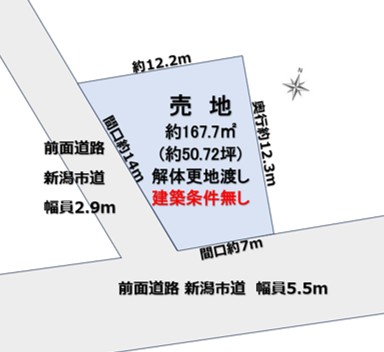 【白山駅徒歩10分・南西角地】関屋小学校徒歩6分、教育・生活施設が充実した住環境。50坪の敷地で、日当たり良好。快適で便利な暮らしを実現できる理想の立地です。 ☆おススメpoint☆白山駅徒歩10分の便利な立地!南西角地で陽当たり良好。関屋小学校徒歩6分で子育てにも安心。生活施設も揃い、快適で便利な毎日を叶えるおすすめの土地です。 新潟市中央区学校町通3番町、利便性と快適さを兼ね備えた南西角地の土地です。土地面積約167.7㎡(50.72坪)とゆとりある敷地で、陽当たり良好。道路幅員5.5mの市道に面し、開放感のある立地が魅力です。ライフラインも整備済みで、イオンスタイル白山や銀行、コンビニ、スーパー、歯医者など生活施設が徒歩圏内に揃います。教育環境も良好で、関屋小学校へ徒歩約6分、白山駅から徒歩約10分と通勤・通学にも便利。都市生活の利便と穏やかな住環境を両立できる、家族にもおすすめの立地です。