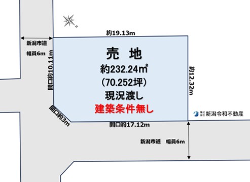 東区東明6丁目の角地232.24㎡!建築条件なし、現況渡し。江南小徒歩15分・石山中徒歩2分で子育て環境も安心。生活施設多数・快適アクセスも魅力です! ☆おススメpoint☆東明6丁目角地約70坪の売地がでました!中学校も近くお子さまの通学も安心。建築条件無し!周辺には公園やコンビニ、パン屋さんもあって毎日のお買い物も◎!車のアクセスも良くて、生活しやすい環境です! 新潟市東区東明6丁目の広々232.24㎡の売地。角地で交通のアクセスも良好、平坦な地形なので建築しやすく、建築条件なしでお好みの住宅設計やリノベーションが可能です。江南小学校へ徒歩15分、石山中学校へ徒歩わずか2分とお子様の通学も安心。近隣には公園やコンビニ、ドラッグストア、パン屋さんなど生活利便施設が充実しており、子育て世帯にも最適な環境です。さらに、銀行や美容室も揃い、日常の利便性が高いエリア。車利用の方には紫竹山インターチェンジへのアクセスもスムーズで、中央区や江南区にも通勤やお出かけに便利です。陽当たり良好な好立地で、新しい生活を始めませんか?