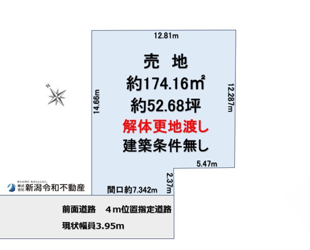 小針駅徒歩5分、小学校も近くて子育て安心。買い物施設もそろう便利な立地です。建築条件なしで理想の住まいが叶います。 ☆おススメpoint☆小針駅まで徒歩5分で通勤も通学も便利です。小学校も近く、子育て世代にぴったりの環境ですよ。周辺にお店や施設も多く、暮らしやすさ抜群の立地です。 【新潟市西区小針上山】 毎日の暮らしがもっと楽しくなる、便利で安心の住環境です。小針駅まで徒歩5分、小針小学校まで徒歩約9分、小針中学校までも徒歩圏内で、通勤・通学がとてもスムーズ。 周辺には金鵄幼稚園やクリニック、歯科医院、イオンスタイル、パン屋さん、学習塾、銀行など、子育て世代にうれしい施設がそろっています。 土地は174.16㎡、南西向きで、建物は解体後に更地でお渡し、建築条件もありません。お好きなハウスメーカーで、ご家族の理想のマイホームを建てられます。