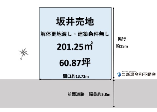価格更新しました!【建築条件なし・解体更地渡し】新潟大学前駅徒歩13分・新通つばさ小学校徒歩4分!橋を渡れば『新通エリア』♪買い物ラクラク♪通勤通学しやすく、便利で住みやすい60.87坪! 【土地の特徴】 〇陽当り良好で、家が建てやすい60.87坪の平坦地! 〇建築条件なしで個性あふれる住まいを実現できます! 【土地の安全性】 〇前面道路は5.8mあるので、広々♪安全に駐車できます! 〇街灯もあるためお子さんの通学も安心です。 【周辺環境】 〇JR新潟大学前駅まで徒歩13分!電車通学通勤ラクラク♪ 〇新通エリアまで近し!徒歩10分以内にスーパーなどの商業施設・保育園・公園があります! 車でも徒歩でも♪また、四季を感じる西川沿いを散歩するのも◎ 新通ICまで車で10分と遠くにも出やすい♪ 〇新通つばさ小学校まで徒歩4分 〇坂井輪中学校まで徒歩28分 〇坂井村上バス停徒歩8分